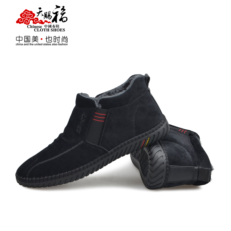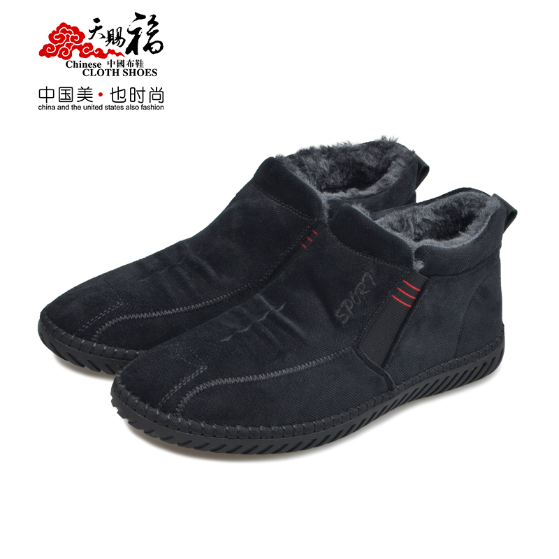 天赐福2019冬男鞋休闲鞋版黑色棉鞋4120020全渠道
