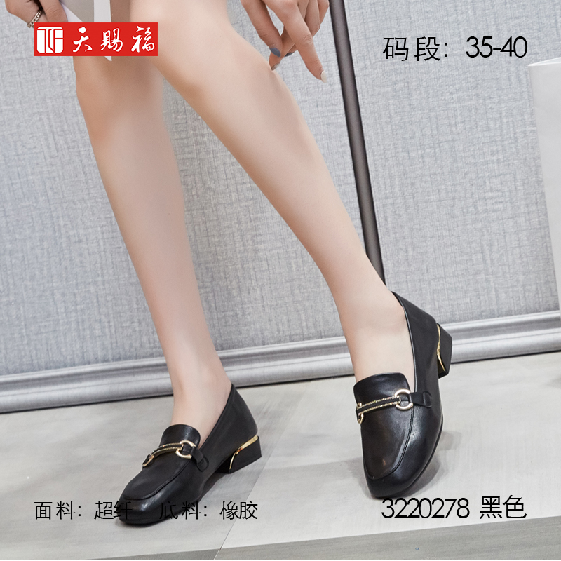 商品名称:天赐福2021秋女鞋未定义平跟版黑色单鞋3220278